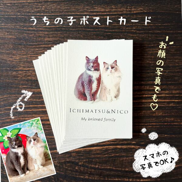※お試し価格※うちの子ポストカード10枚 (はがき/ハガキ/カード/オリジナル/アート/ペット写真/犬/猫/遺影/うちの子グッズ/猫グッズ/犬グッズ/オーダーメイド/ペット/プレゼント/記念) | 待兼山カオス製作所